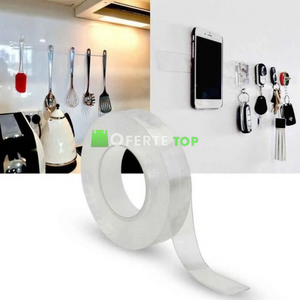 - Cu banda adeziva ultra puternica puteti lipi orice lucru pe perete, sau pe orice alta suprafata dura în cel mai scurt timp, fara sa gauriti.