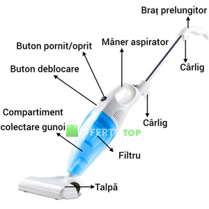 Toate aceste elemente sunt indeplinite de aspiratorul vertical 2 in 1 cu filtru, fara sac. Mai mult, te scuteste de durerile de spate, deoarece nu trebuie sa te apleci si se pliaza perfect in mana oricui! Dispune de un maner metalic, detasabil care face mai facil procesul de aspirare.
