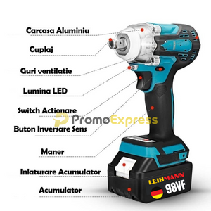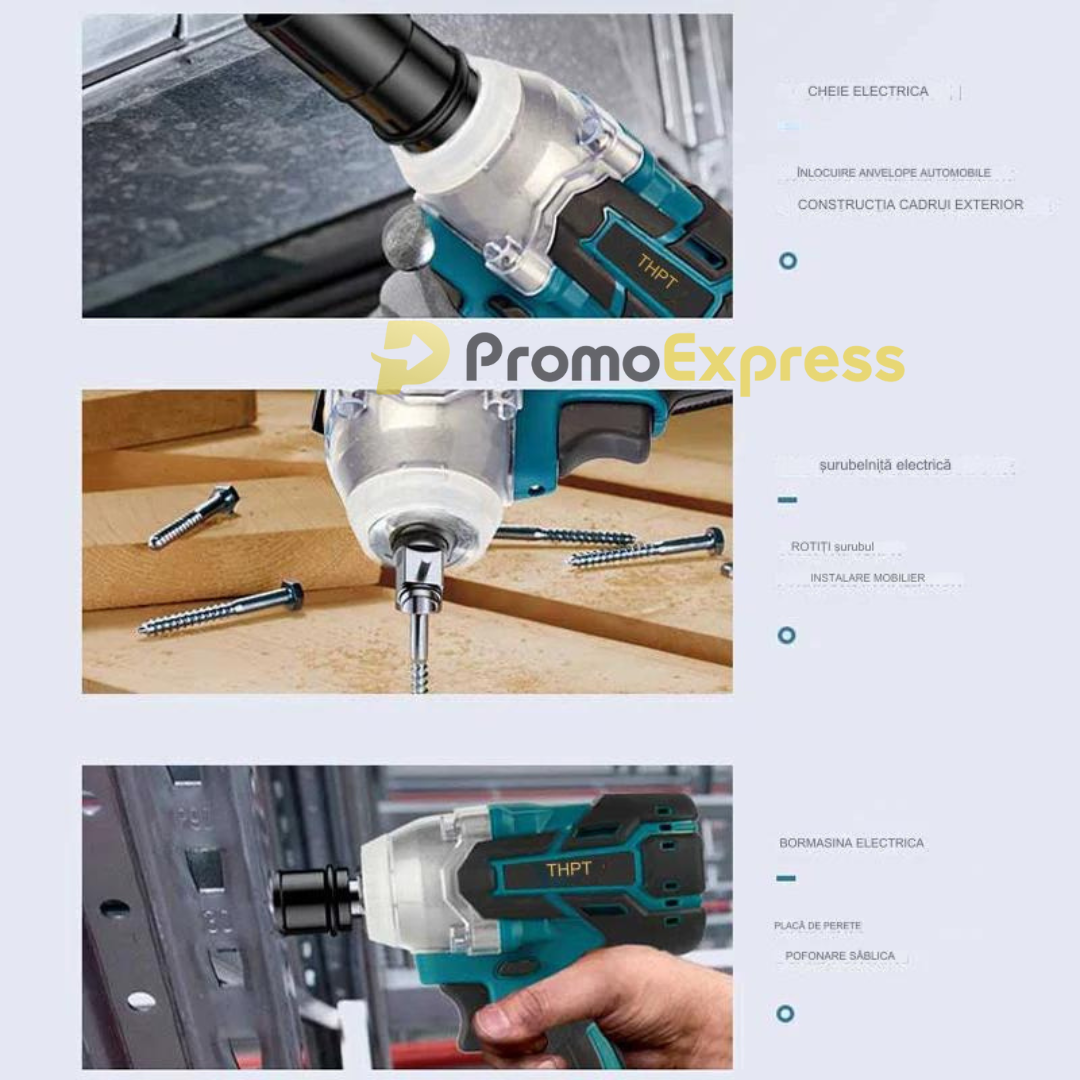 Versatilitate Universală: Ideal pentru înșurubare în diverse materiale, această mașină de impact este perfectă pentru proiectele de construcție, întreținere auto sau lucrări de bricolaj.
