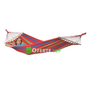 - Hamacul din bumbac cu bara din lemn, este extrem de rezistent, usor si ocupa putin spatiu