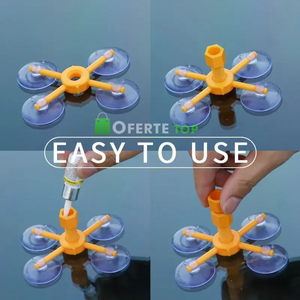 Fixati crucea de atasare cu ventuze la geam, astfel incat orificiul sau central sa fie direct deasupra fisurii.