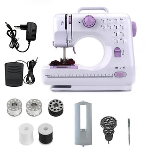 - Aceasta mini masina de cusut vine completa cu bobine, ac, filet de ac, adaptor de alimentare si manual de utilizare.