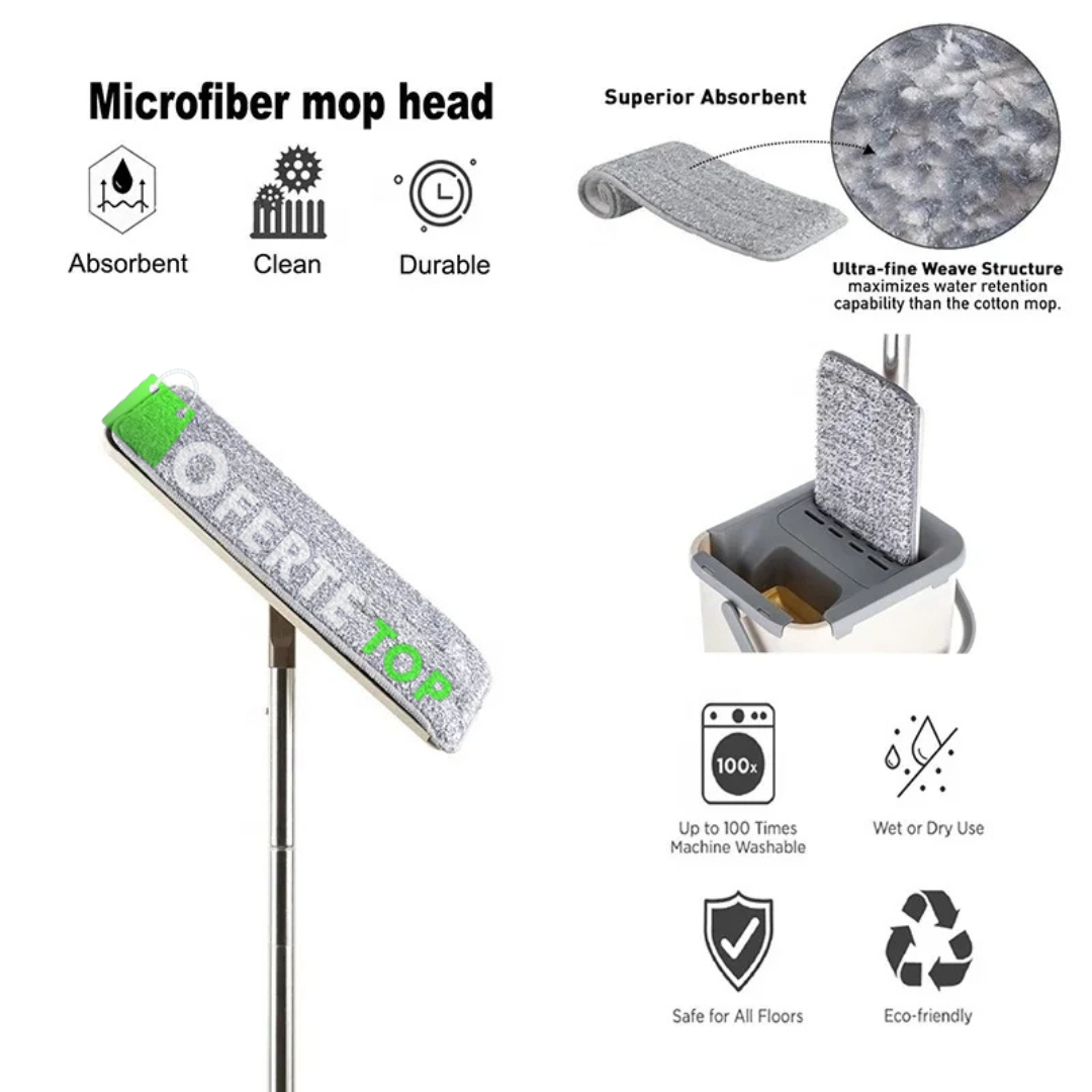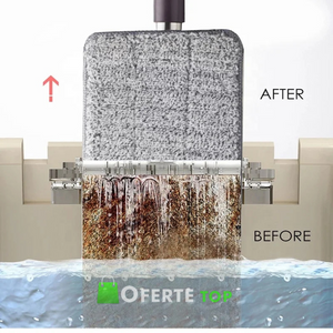 - Mopul curata repede si eficient si functioneaza precum un magnet care atrage murdaria, este extrem de absorbant, dar in acelasi timp, delicat cu suprafetele tale si are un maner de aluminiu ce se poate ajusta.